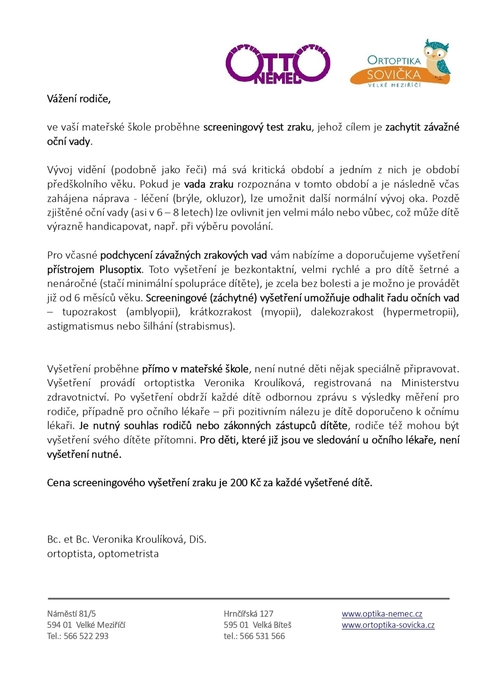 Oční screening 2026 - MŠ Lánice