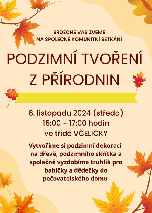 Srdečně zveme na komunitní setkání ve třídě Včeliček