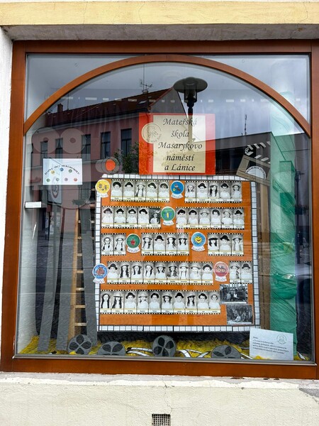 Ve výloze Drogerie na Masarykově náměstí bylo nainstalováno tablo předškoláků 2024.