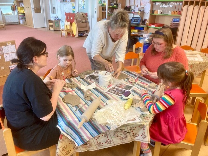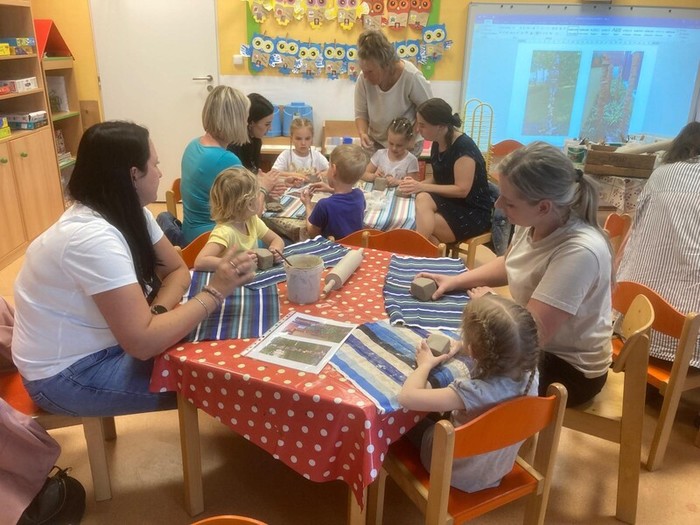 Další komunitní setkání pro rodiče s názvem „Keramika v zahradě“ uspořádala třída Soviček, a to v pondělí 8. 4. 2024. Tvořivé odpoledne vedla odbornice paní Jitka Sedláková z Přibyslavic, která dlouhodobě pracuje s dětmi ve své keramické dílně. Ta všem přítomným ukázala základy práce, dala spoustu cenných a praktických rad a inspirací. Všichni rodiče se tak se svými dětmi s nadšením vrhli do práce a nestačili jsme se divit, jak krásné a originální výtvory vykouzlili! Cílem setkání bylo vytvořit ozdobné dekorace k nově vybudovanému relaxačnímu chodníčku na zahradě v Lánicích. Vyráběli jsme různé skulptury, např. válce, koule, květiny, zvířátka, skřítky, ozdobné podložky, dekorační kameny, abstraktní tvary aj. Teď budeme muset být chvíli trpěliví, nějaký čas počkat až výrobky řádně vyschnou, vypálit je v keramické peci a pak je naglazovat a znovu vypálit. Tento proces bude časově delší, ale již teď se moc těšíme, jak budou finální výrobky vypadat a především, až je budeme společně na dalším setkání instalovat na naší zahradě.