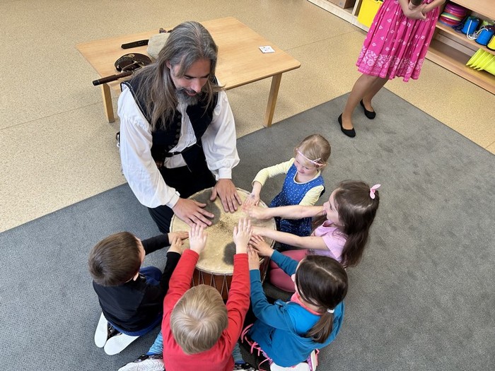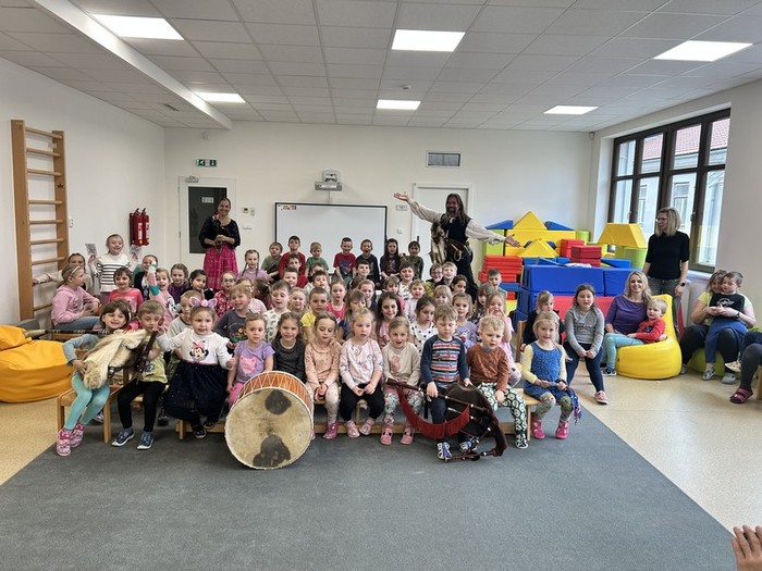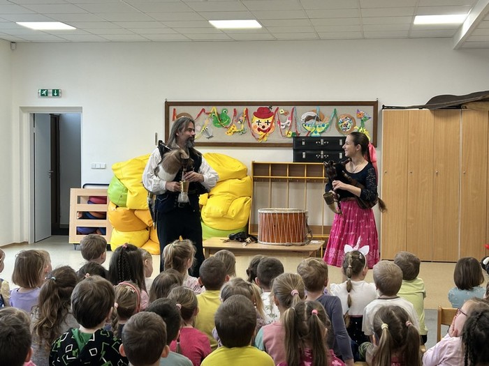 Dne 8. 4. 2025 zavítali do naší mateřské školy Dudáci Tryhuci – manželé Ondřej a Lucie, opravdoví mistři svého umění a nadšení obnovitelé dudácké tradice na jihozápadním Brněnsku. V jejich podání ožily dudy i gajdy v celé své kráse, a děti měly příležitost seznámit se s kouzlem těchto jedinečných nástrojů. Společně jsme zpívali známé písničky z pohádek, hádali melodie zahrané na dudy a nechali se unést jejich magickými tóny. Program děti zaujal a radost v jejich očích byla důkazem, že hudba má moc spojovat a přinášet radost.