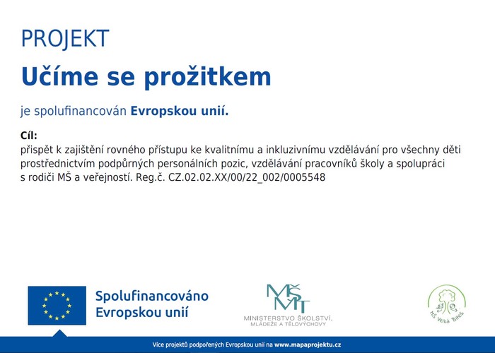 velkou část dne. Podporované v rámci projektu MŠMT – OP JAK Učíme se