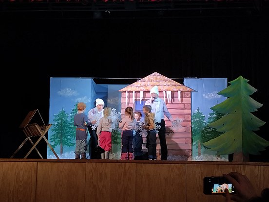 Na jevišti se objevil Sněhuláček, kterému děti pomohly ozdobit domeček vločkami. Společně si zazpívaly koledy, nazdobily vánoční stromeček s dárky, postavily Betlém a vydaly se hledat kapříka. Celé dopoledne se neslo v radostné atmosféře a děti se krásně naladily na blížící se Vánoce.
